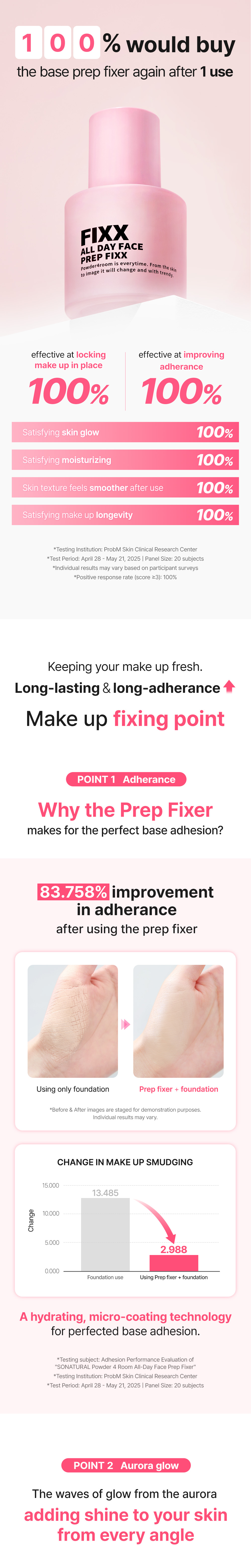 Prep fixer, which helps moisturize and clean skin, helps improve skin texture and shine.