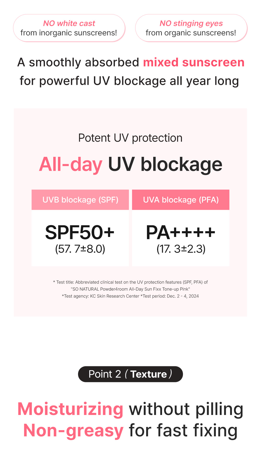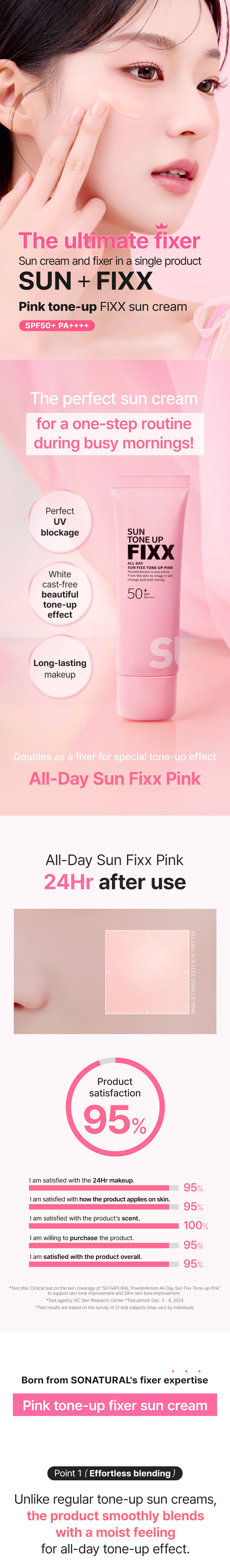 Fixer sun cream that enhances makeup fixation helps maintain a pink tone 24 hours a day.